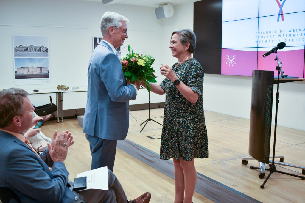 Vizepräsidentin Barbara Richstein eröffnete die Ausstellung und betonte in ihrem Grußwort die Bedeutung der Verbindung zwischen Politik und Zivilgesellschaft für die Zukunft des Weimarer Dreiecks: „In den vergangenen Jahrzehnten ist es gelungen, unter dem Schirm des Weimarer Dreiecks Bürgerinnen und Bürger unserer drei Länder in großer Vielfalt zusammen zu bringen.“ Dabei seien unzählige Projekte auf kommunaler und regionaler Ebene initiiert und durchgeführt sowie trilaterale Partnerschaften zwischen Regionen oder Städten und Gemeinden geschlossen worden. Vor allem Jugendprojekte hätten in den vergangenen drei Jahrzehnten zum Erfolg und zur Verbreitung der Idee des Weimarer Dreiecks beigetragen, so die Vizepräsidentin.