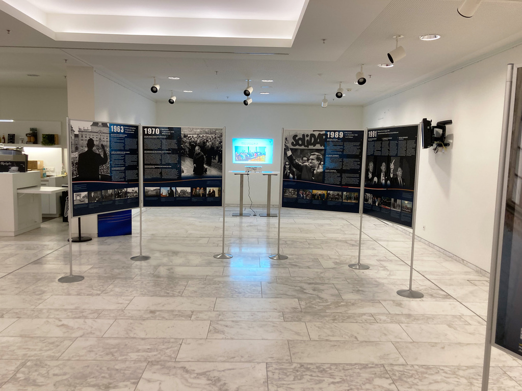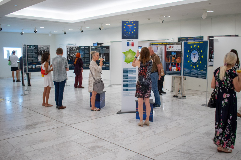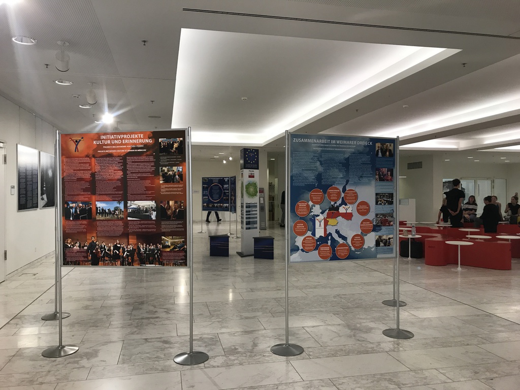 In der neuen Foyerausstellung „Weimarer Dreieck – Vergangenheit, Gegenwart, Zukunft“ zeigt der Landtag Brandenburg Meilensteine der deutsch-polnisch-französischen Zusammenarbeit. Anhand von Stelltafeln und Fotografien werden wichtige Stationen der politischen Entwicklung, Beispiele zivilgesellschaftlichen Engagements sowie die Zukunft des Weimarer Dreiecks als vereintes Netzwerk vorgestellt. Die Ausstellung ist vom 10. Juli bis zum 29. August 2024 kostenlos im Foyer des Landtages Brandenburg zu besichtigen, jeweils montags bis freitags zwischen 8 und 18 Uhr.