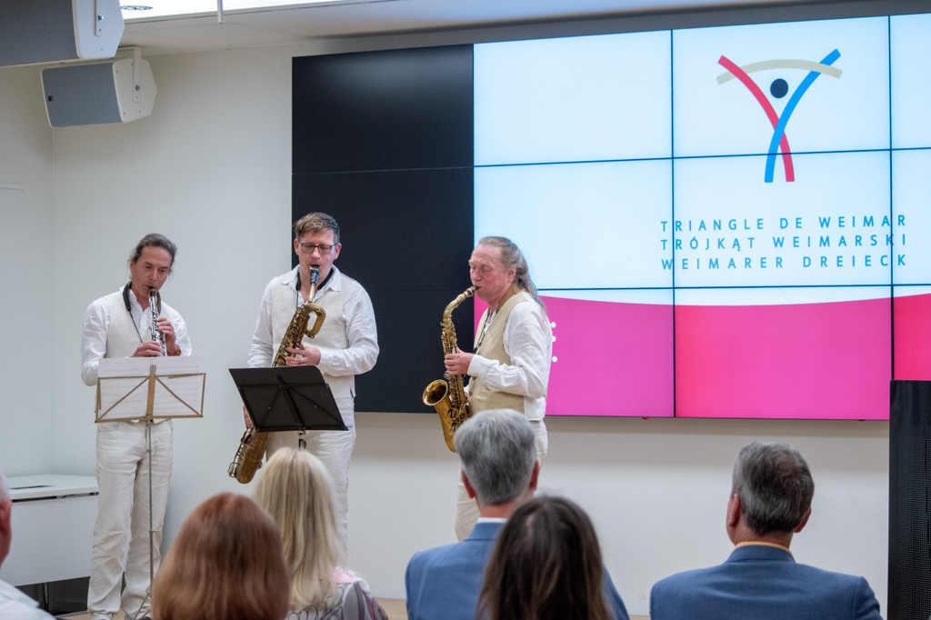 Musikalisch umrahmt wurde die Veranstaltung durch das Saxophon-Trio „Les Connaisseurs“, das Stücke aus den drei Ländern des Weimarer Dreiecks spielte.
